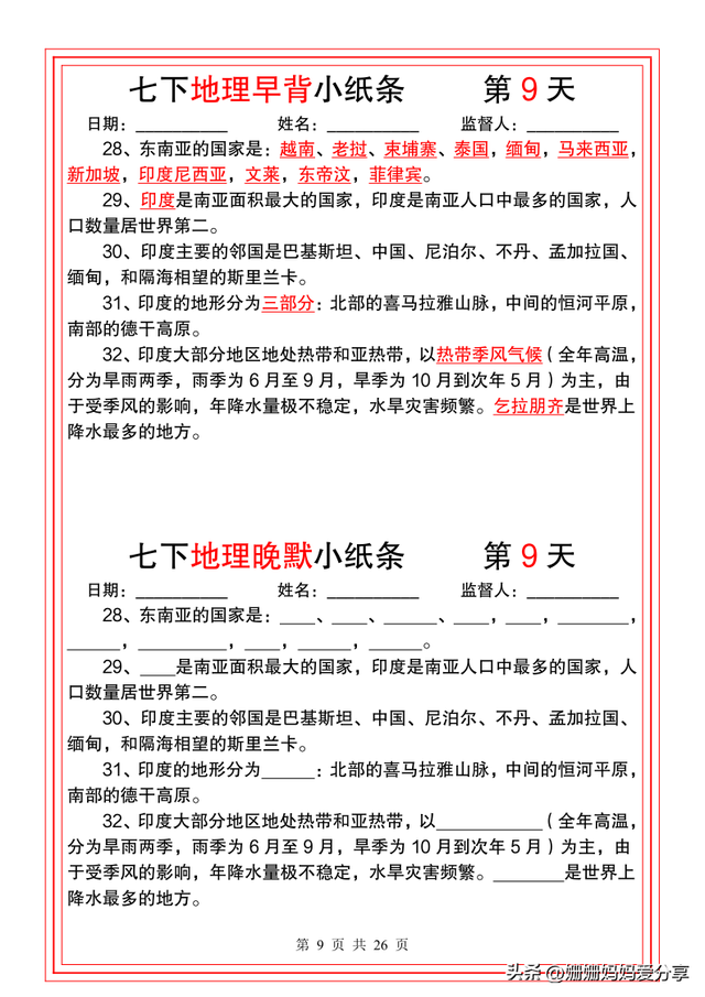 转载请注明来自k12中小学学习资料在线,本文标题:《 初中地理默写卡!气候+地形,每天默》