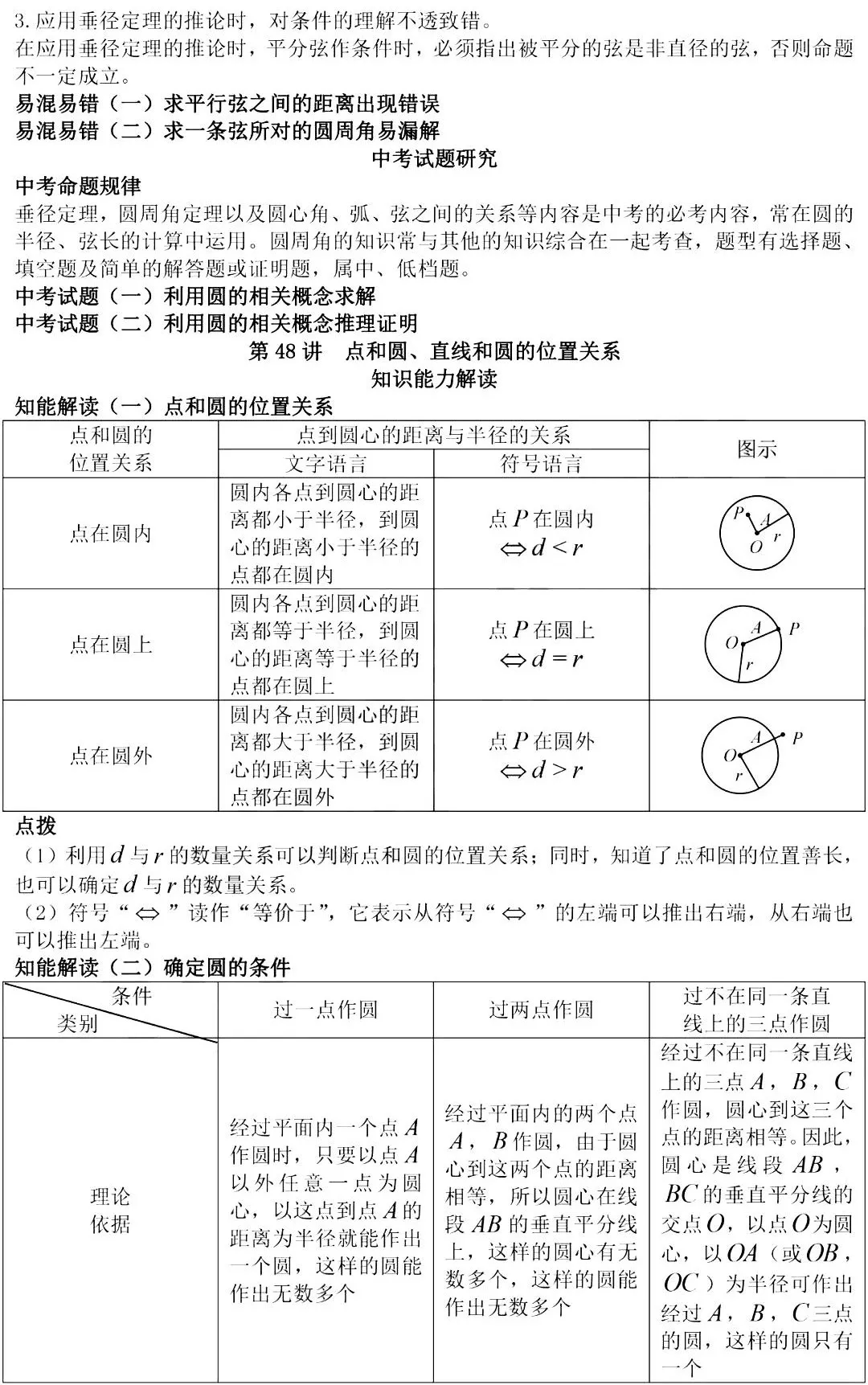 中考数学圆的知识点总结一圆的定义1以点O与直线上的P点为圆心,以r为半径画圆,则满足以下条件1OP垂直平分圆O2经过圆心O且两个端点都在。